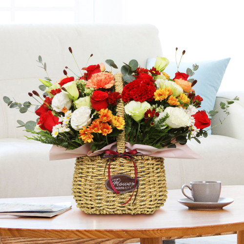 붉은 혼합바구니 (총높이 약40cm)